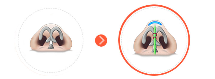 解决方法:延长鼻头,可有效解决鼻头后缩引起的鼻子短、朝天等问题。