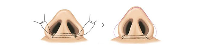 手术方式:切除部分鼻部下方组织的同时,通过移植自体软骨等,自然垫高鼻尖。